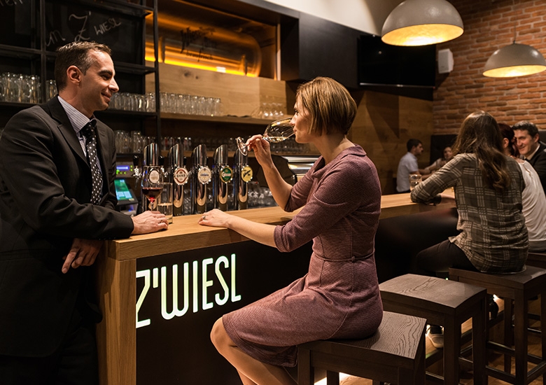 Unser Barraum bietet modernes Ambiente. Nehmen Sie Platz an der langen, eleganten Bar oder auf der geräumigen Ledersitzbank und genießen Sie die köstlichen Schmankerln für den kleinen Hunger, frisch gezapftes Bier, erlesene Weine oder Cocktails. Nach Ihrem harten Arbeitstag, am Beginn Ihres wundervollen Abends, hier ist der Treffpunkt für jung und alt.